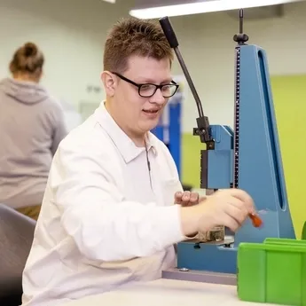 - Dort arbeiten viele Menschen ohne Behinderung.